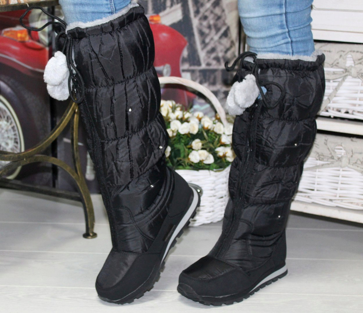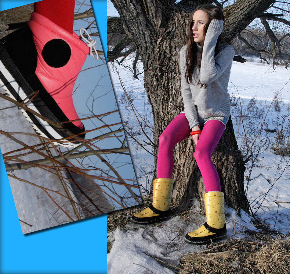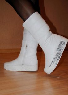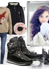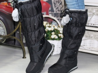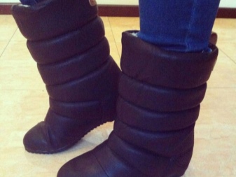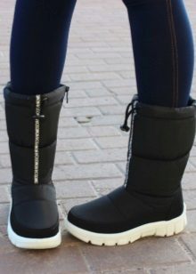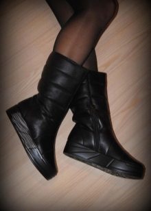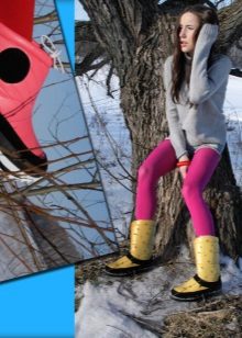 Nhưng quần, là một phần của bộ đồ trượt tuyết hoặc áo liền quần - một lựa chọn tuyệt vời để kết hợp với giày ống phồng. Ngay cả khi kéo quần qua giày, bạn sẽ không trông ngu ngốc, nhưng ngược lại, bạn sẽ tạo điều kiện thoải mái nhất cho đôi chân của mình, loại bỏ việc chúng bị ướt và nhận không khí lạnh qua đỉnh.