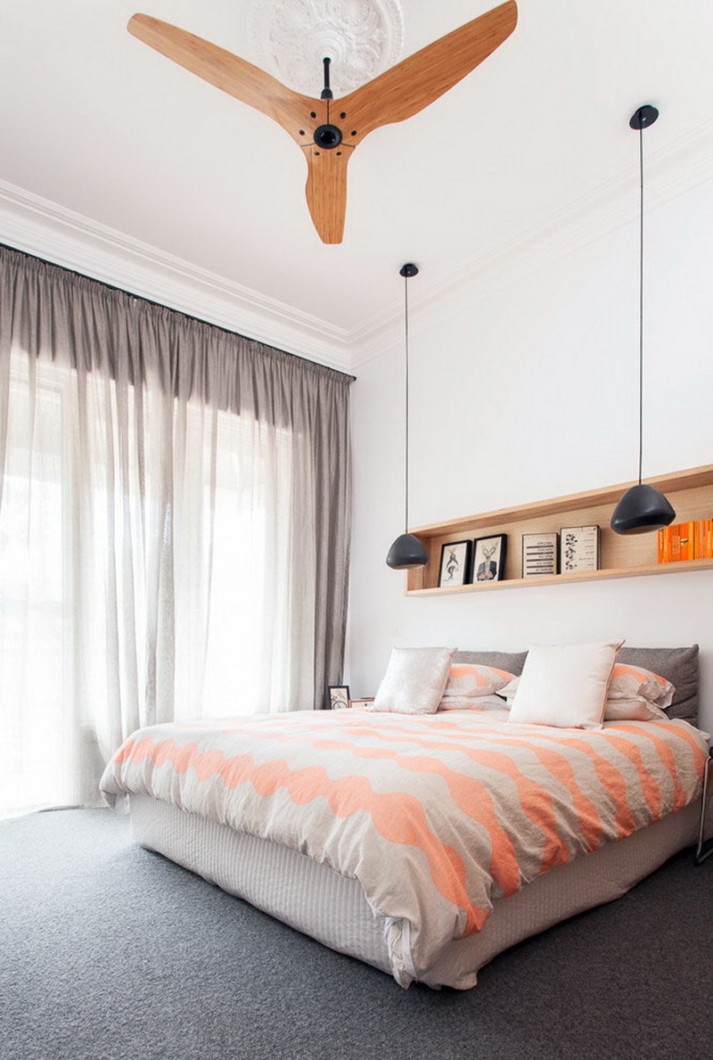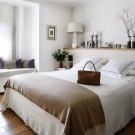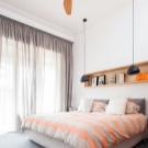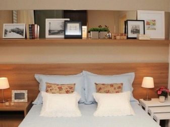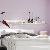 - Kệ ngang thực tế. Tùy chọn này rất đơn giản và tiện lợi: kệ được đặt ở đầu và hài hòa với phong cách của phòng ngủ. Thường xuyên hơn có một mục đích chức năng. Gắn chúng không nên rất cao, nếu không bạn sẽ phải đặc biệt đứng lên để lấy một số thứ. Tốt hơn là nên mua những chiếc kệ như vậy với màu pastel để chúng không gây tranh cãi với tâm trạng chung của phòng ngủ.