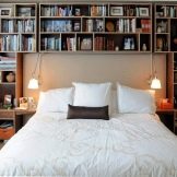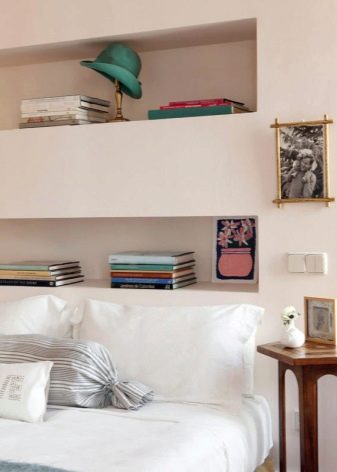 - Kệ trong hốc phía trên giường. Kệ này là tiện dụng và an toàn, loại bỏ khả năng rơi trên đầu với đính kèm không đúng. Vì vậy, bạn có thể trang bị giá sách. Đây là lựa chọn hoàn hảo cho phòng ngủ của trẻ em. Ở góc của nó, bạn có thể đặt một chiếc đèn hoặc một nguồn ánh sáng xung quanh khác để thay đổi ánh sáng thành một thứ nguyên bản hơn. Trong phòng trẻ em thường lắp đặt đèn ngủ với các ngôi sao và nhiều cung thiên văn khác nhau, trẻ em rất quyến rũ. Và một kệ như vậy là một lối thoát tuyệt vời cho không gian khiêm tốn.