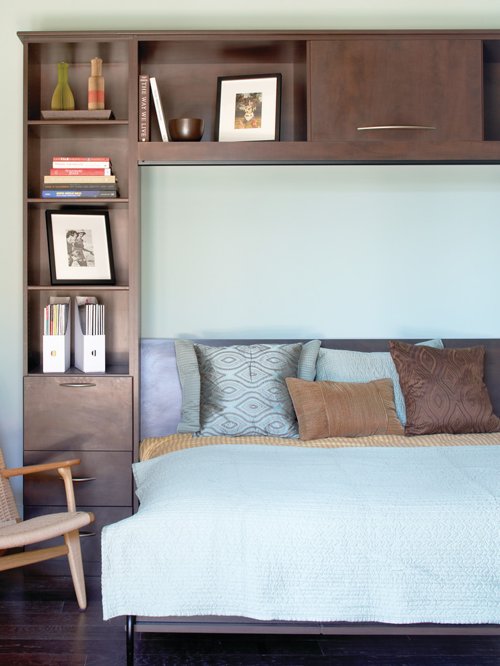 - Các mô-đun kết hợp một giá đỡ với một bàn cạnh giường ngủ và bàn cạnh giường ngủ, thường thậm chí với một tủ khóa tủ quần áo. Trong những thiết kế như vậy, bạn có thể lưu trữ bất cứ thứ gì: từ trang sức trên kệ đến quần áo. Trong tủ luôn có những cánh cửa che giấu đồ vật khỏi con mắt tò mò bên trong. Cũng như các thiết kế mô-đun rất tiện dụng và tổ chức tối đa không gian, tạo ra một góc riêng, tương tự như một phòng để làm việc với máy tính hoặc phòng đọc, nơi bạn có thể nghỉ hưu.