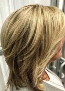 Với độ dài như vậy, hình vuông tạo hiệu ứng độc đáo và thêm khối lượng cho tóc. Đặc biệt tùy chọn này phù hợp với những người có làn da nhợt nhạt và những sợi sáng, cũng nhấn mạnh sự nữ tính.