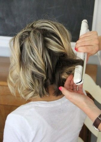 - Phần trên của những lọn tóc vết thương trên ngón tay và cắt thang. Được tổ chức filirovka.