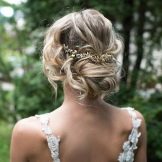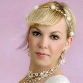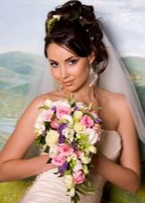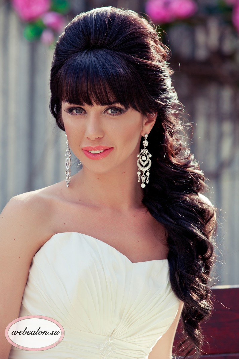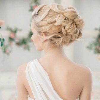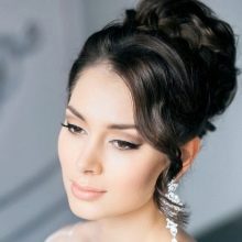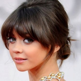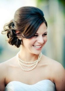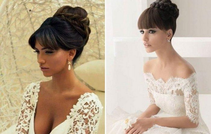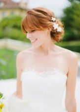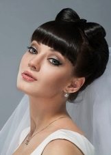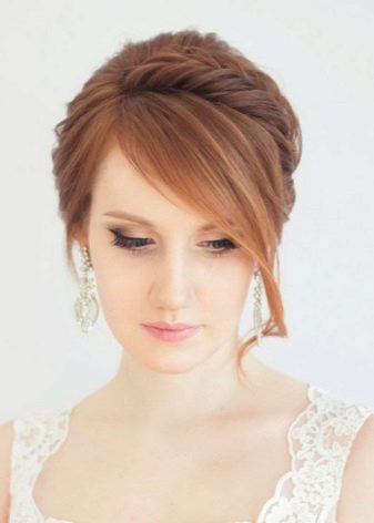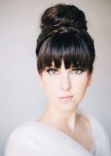 Một chiến thắng cho cô gái tóc vàng sẽ được đặt với một đống. Với kiểu tóc này, tóc có vẻ nặng hơn và bồng bềnh hơn. Trong trường hợp này, một mái tóc dài có lợi hơn để loại bỏ vào tổng khối lượng của tóc. Các bó có thể được trang trí theo nhiều cách khác nhau, nhưng kết hợp với tóc mái thẳng làm cho hình ảnh của cô dâu quyến rũ. Anh ấy trông tuyệt vời trên mái tóc đen và vàng.