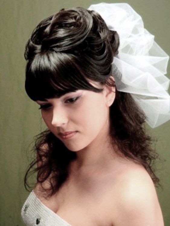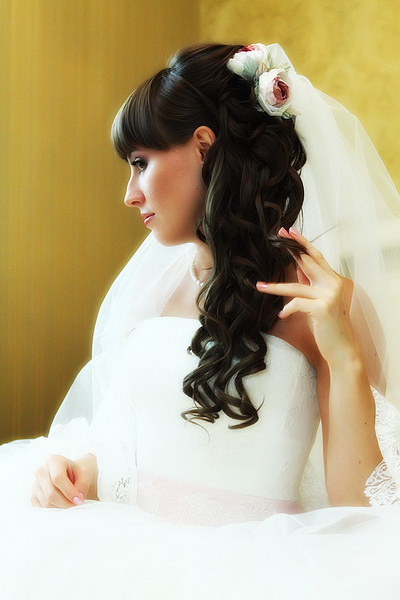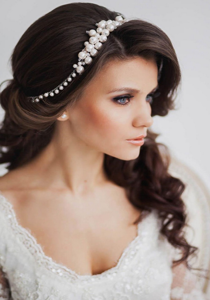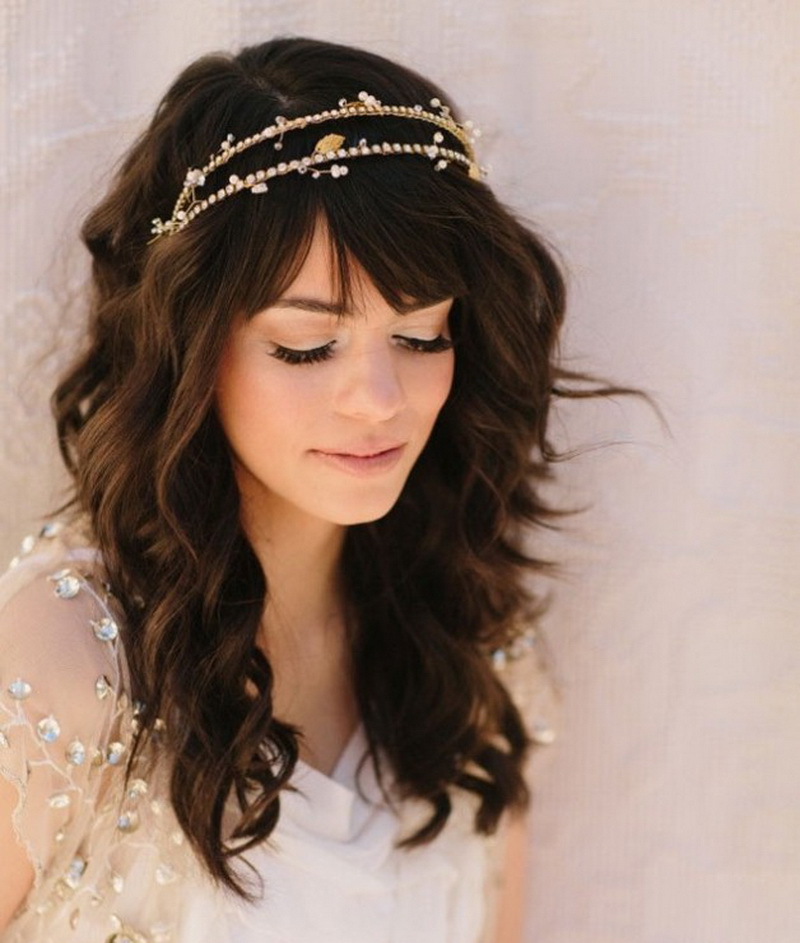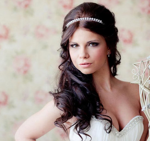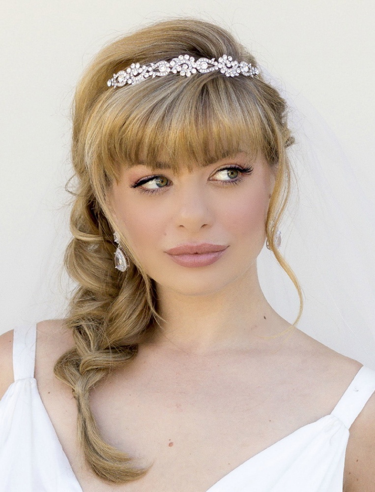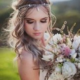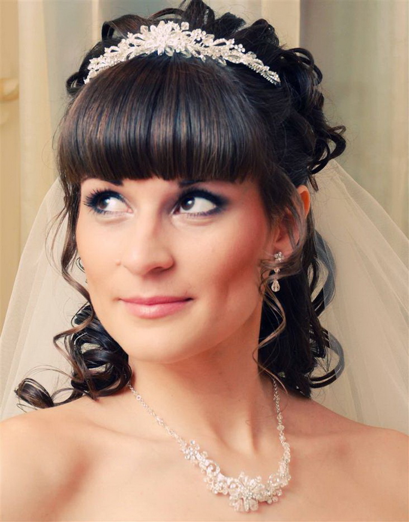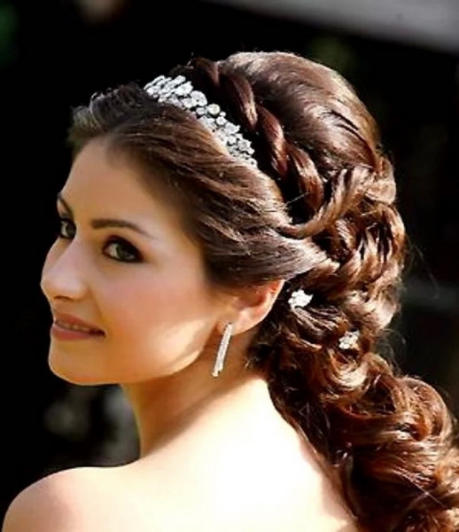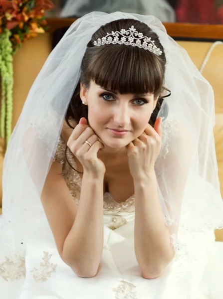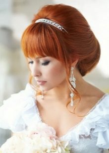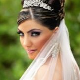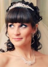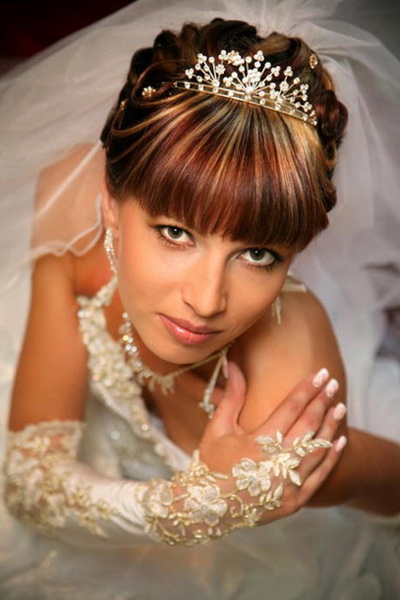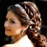 Một phần của kiểu tóc cô dâu theo truyền thống là một tấm màn che hoặc vương miện. Với một cái vương miện, một cô gái đi xuống lối đi trở thành một công chúa thực sự. Hạt và kim cương làm cho đồ trang sức này thành một vương miện thực sự. Thông thường, vương miện được mặc sao cho nó nằm trên đường viền giữa rìa và phần lớn của tóc. Và bạn cũng có thể tạo ra một chùm hoa ở đỉnh đầu và trang trí phần này của các lọn tóc bằng một đường chéo. Khi tóc được thu thập theo cách này, nó vẫn còn làm loãng mức độ nghiêm trọng với một vài lọn tóc mỏng ở hai bên mặt. Về bản chất, một trang trí như một diadem là phổ quát. Nó làm cho một hình ảnh sang trọng của một cô gái với bất kỳ tiếng nổ.
