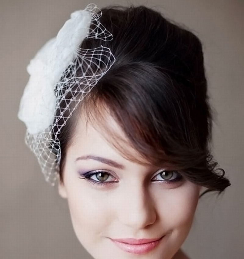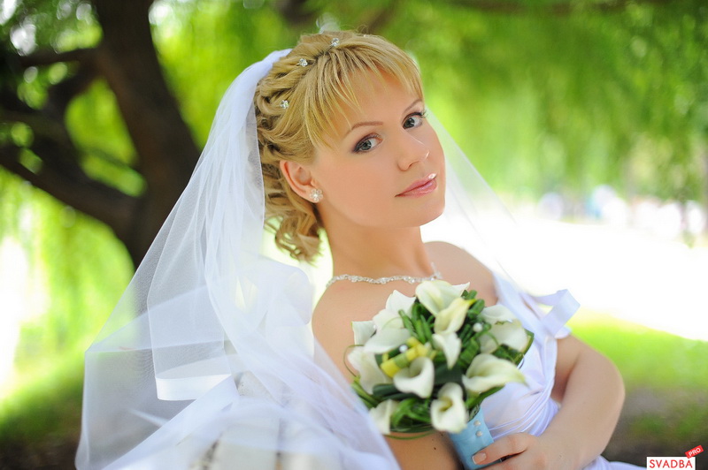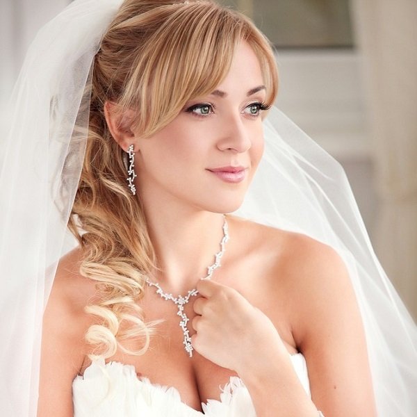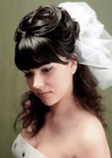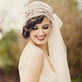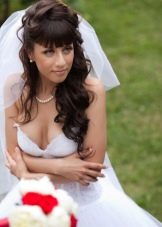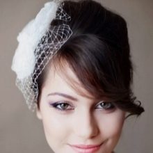 Veil vẫn là cô dâu kiểu tóc trang trí chính. Và hầu như không bao giờ hết thời trang. Khi đặt với tóc mái thẳng, một tấm màn một lớp thông thường sẽ trông tốt. Nhưng, ví dụ, một kiểu tóc với tóc mái xiên gợi ý sự hiện diện của một tấm màn che trong bất kỳ biến thể nào. Ở đây bạn cần tập trung vào thực tế là trang trí này được kết hợp tốt với trang phục của cô gái. Dưới tấm màn che có thể được ẩn giấu và một mái tóc mượt mà, những lọn tóc ngộ nghĩnh và tóc, được bện trong bím tóc, cũng như một loạt các nút và bó.