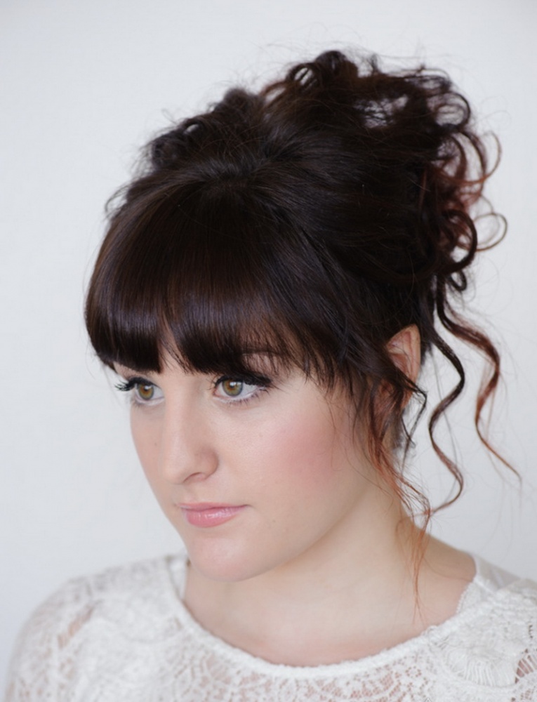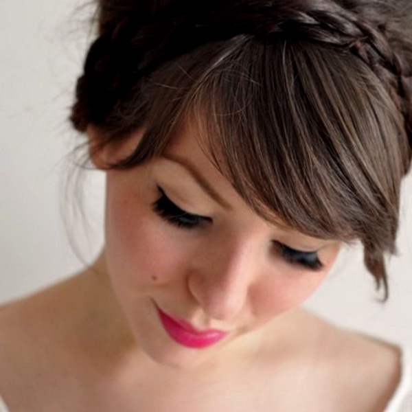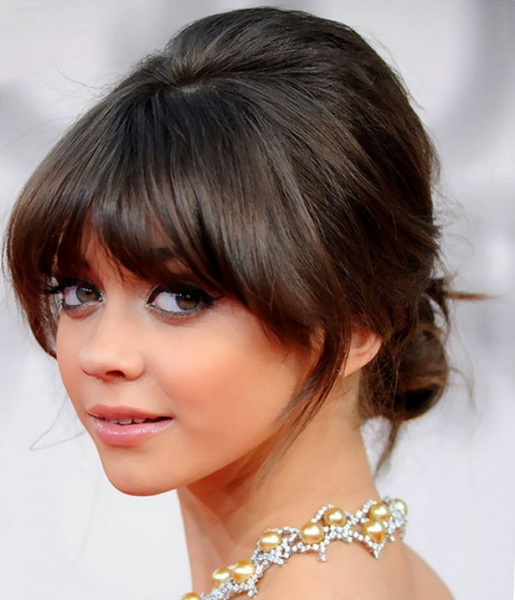 Kiểu tóc bất cẩn cố ý từ mái tóc búi thấp, kết hợp với tóc mái thẳng, bên dưới lông mày khiến hình ảnh của một cô gái nhấn mạnh trẻ trung và dịu dàng. Nó trông đặc biệt tươi sáng trên mái tóc đen với độ bóng khỏe mạnh và lung linh của các sắc thái khác.