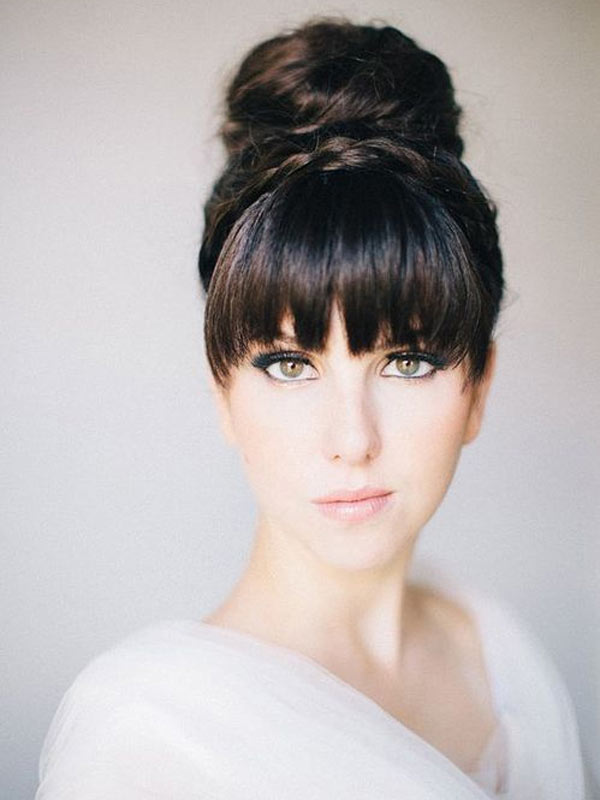 Tóc mái thẳng mở ra cơ hội lớn cho các thí nghiệm khác nhau. khi thiết kế kiểu tóc cô dâu. Yêu cầu cho tiếng nổ chính là nó phải được cắt tỉa chính xác và trơn tru trong ngày cưới. Tóc mái bằng sẽ tạo hiệu ứng thú vị khi kết hợp với những lọn tóc. Mặc dù lớp vỏ được thử nghiệm thời gian có thể nhìn với nó không kém phần ấn tượng. Kết hợp tóc mái như vậy với bím tóc nên rất chu đáo. Tránh những thứ rườm rà trong ý nghĩa này. Nó là tốt hơn để hạn chế trang trí hạn chế của tóc bện.